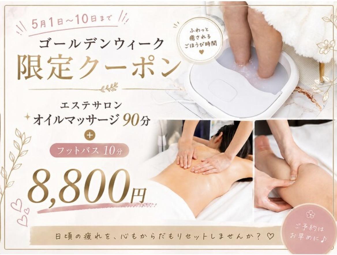 【GW限定】心も体もリセット♪ご褒美オイルマッサージク ーポン登場🌿